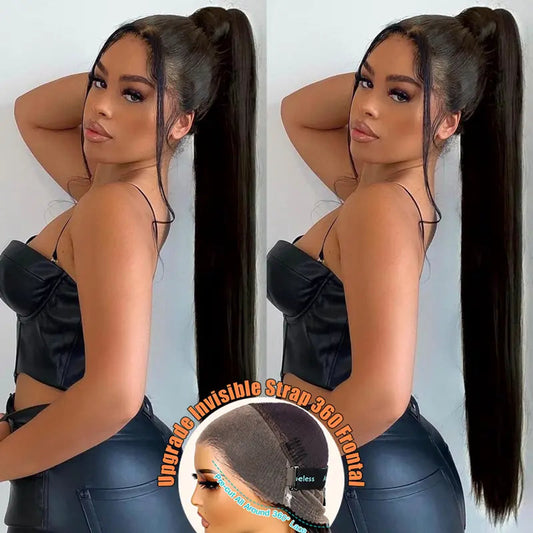 Invisible Strap 360 Lace Wig Silky Straight Bleached Knots
